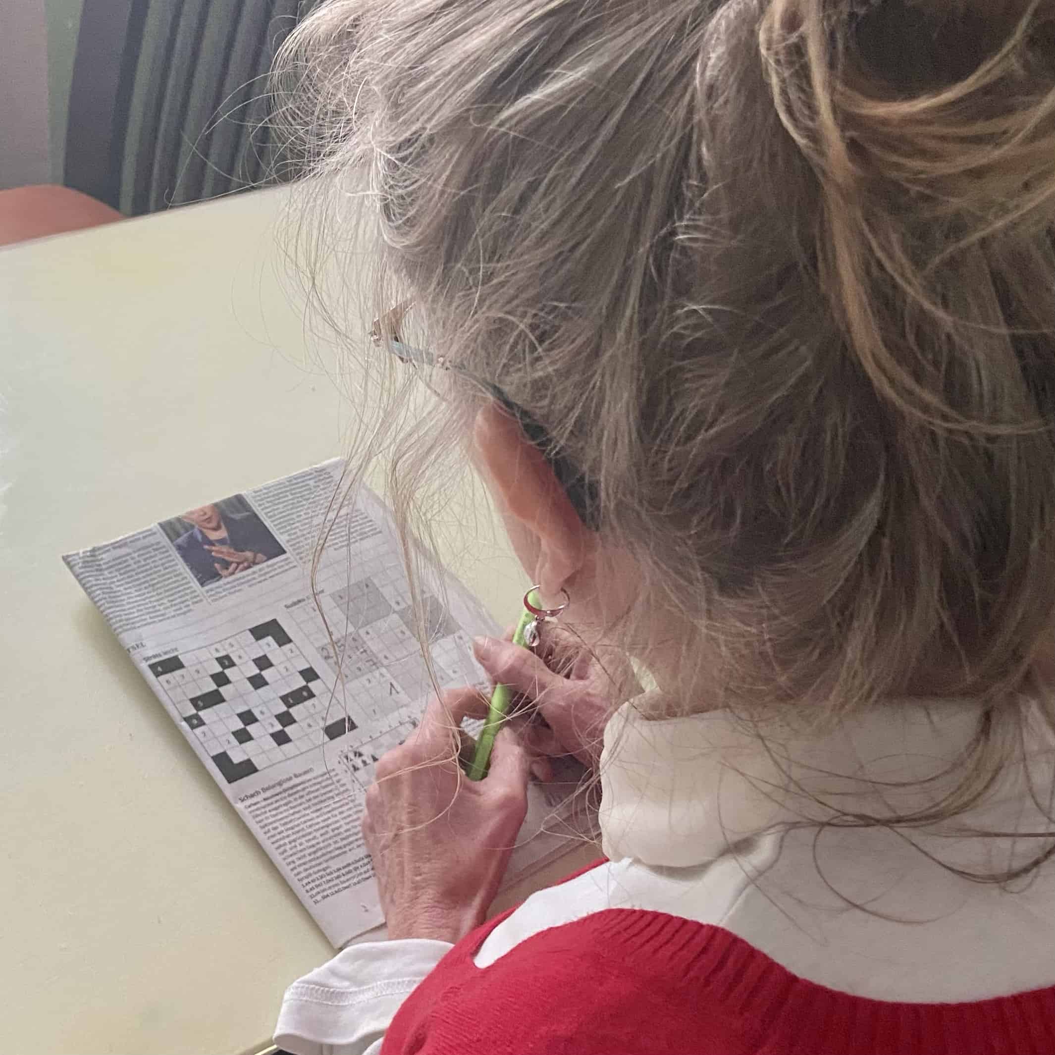 Nach dem Essen nehme ich mir Zeit für etwas Gehirnjogging. In der wärmeren Küche …