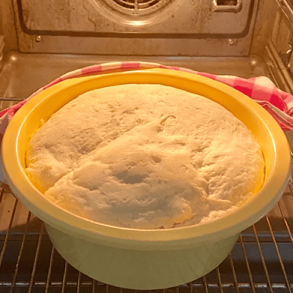 Zum Mittagessen erwarten wir einen angemeldeten Gast. Hensel. Der Pizzateig ist schon super aufgegangen.