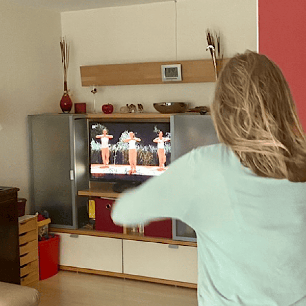 Während mein Mann Dean Gretel am nächsten Morgen zur Schule bringt, beginne ich den Tag mit Gymnastik.