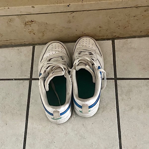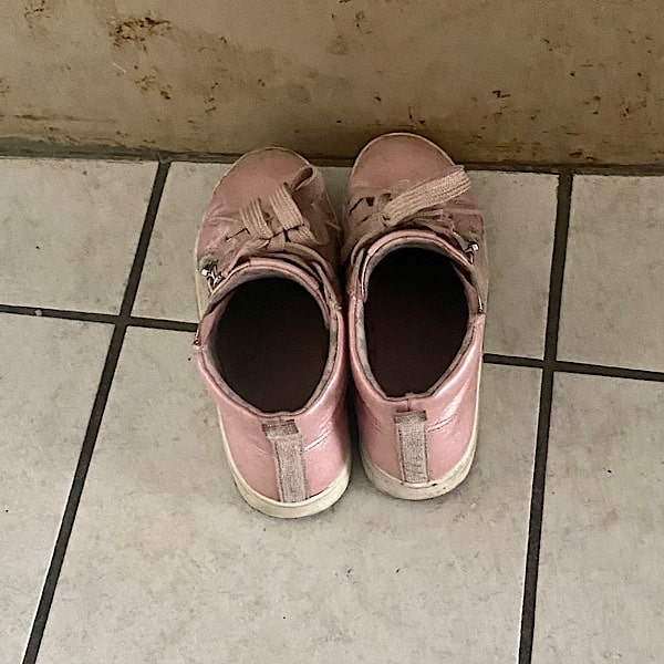 Die Schuhe werden direkt vor der Treppe nach oben abgestellt.