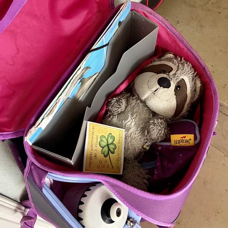 Im Schulranzen finden wir ihren „Willi“. Nachts ist er immer bei ihr, tagsüber nur bei besonderen Anlässen. So wie heute, wo zu Beginn des dritten Schuljahres ein Lehrerwechsel ansteht.
