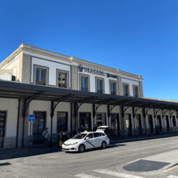 Wir reisen mit dem Zug aus Malaga an. Mit drei Stopps dauert die Fahrt 1,5 Stunden. Der Zug fährt dreimal pro Tag. Morgens hin und abends zurück werden 37,00 EUR pro Person fällig. Schon die Fahrt ist beeindruckend. Die Ausläufer der Sierra Nevada auf der rechten Seite und Olivenhaine weit und breit. Eine wenig besiedelte Landschaft und Sonnenschein.