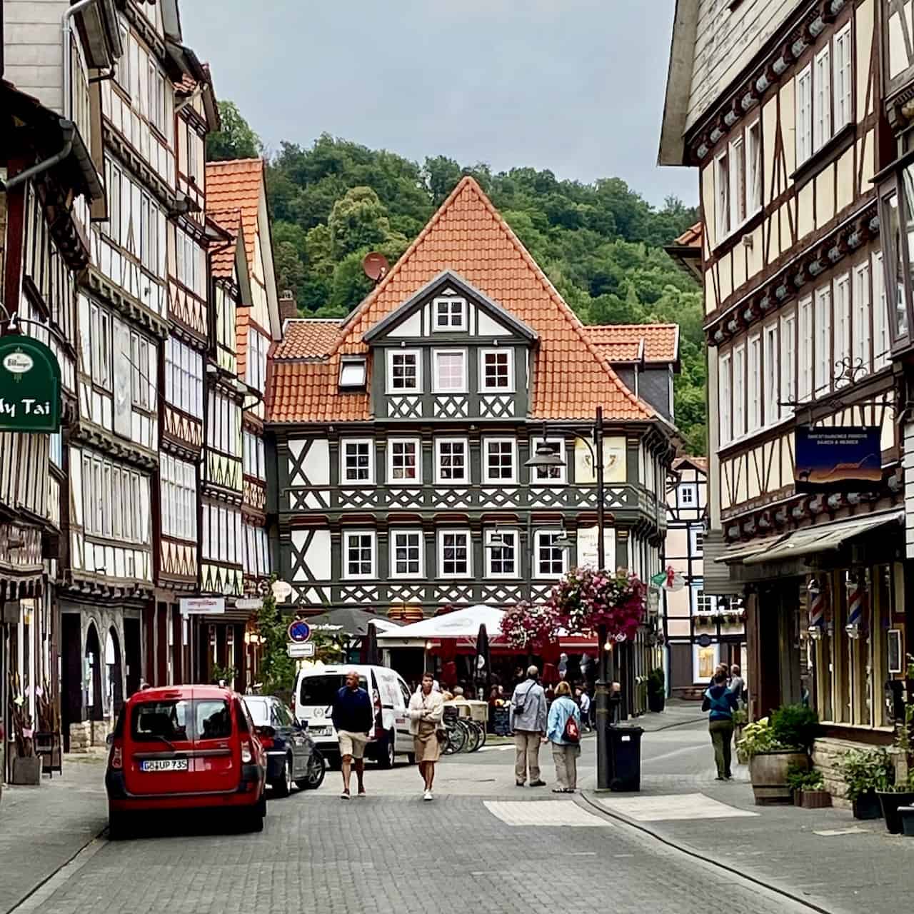 Viel mehr beeindruckt uns die Altstadt. Zahlreiche gut erhaltene Fachwerkbauten schmücken die Gassen des historischen Stadtteils von HMÜ. Dieser wird bereits in einem Dokument von 1183 als „Stadt“ erwähnt. Die Entstehung des Ortes dürfte also deutlich früher geschehen sein. Man schätzt so etwa im Jahr 800.