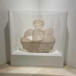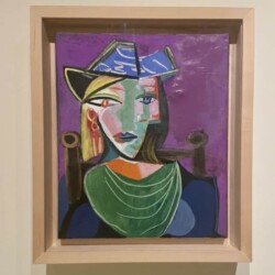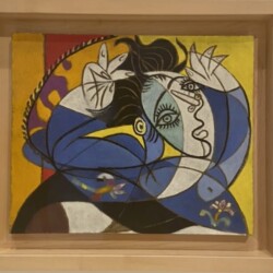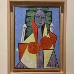 Die Warteschlange am Eingang ist nicht sonderlich lang. Ich habe jedoch bereits ein Online-Ticket und gehe damit direkt zu den Securitys im Eingangsbereich. Ein paar Minuten soll ich hier warten. Dann lässt man mich rein. Den Rucksack muss ich abgeben. Die Verwahrung ist kostenlos. Im Ticketpreis von 9,50 EUR pro Person ist ein Audioguide enthalten. Pablo – so, wie man ihn kennt – empfängt mich gleich zu Beginn der Ausstellung. Es folgen Werke aus den jeweiligen Epochen seiner Schaffenszeit. Jede Epoche wird mit einer kurzen und sehr unterhaltsamen Beschreibung eingeleitet. Auf spanisch und auf englisch. Das gefällt mir sehr.