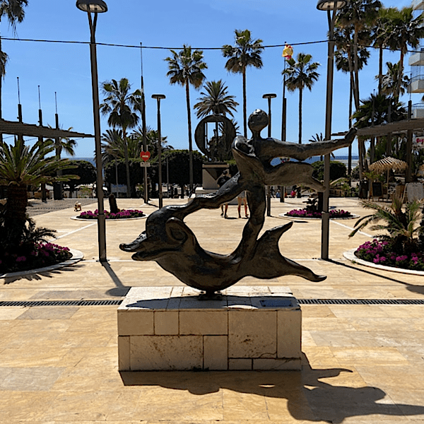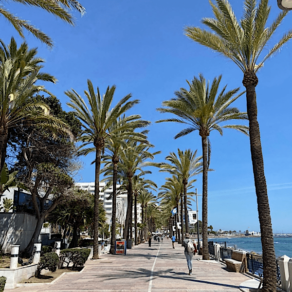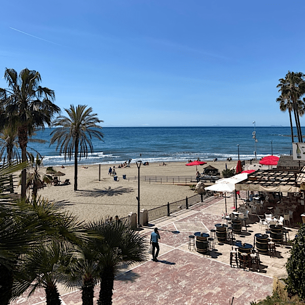 Zum östlichen Ende des Strands von Marbella bin ich schon vor meinem Café-Besuch spaziert. Das westliche Ende steht nun an. Irgendwann hört der geteerte Weg auf und ich gehe noch einige Schritte, bis ich endlich umkehre. Auf meinem Weg habe ich weitere viele schöne Menschen gesehen. Ob reich, kann ich leider nicht beurteilen. Deren Erscheinung aber lässt keinen finanziellen Notstand vermuten. Ich frage mich, ob der Wert dessen, was diese jungen Menschen erleben oder wie sie ihren Tag verbringen können, wirklich von ihnen erkannt wird.